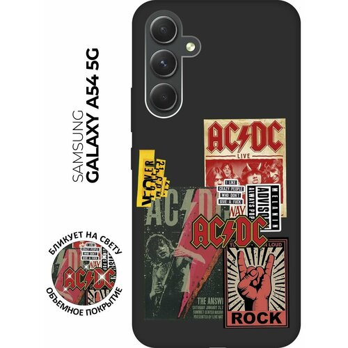 Матовый чехол AC/DC Stickers для Samsung Galaxy A54 5G / Самсунг А54 с 3D эффектом черный