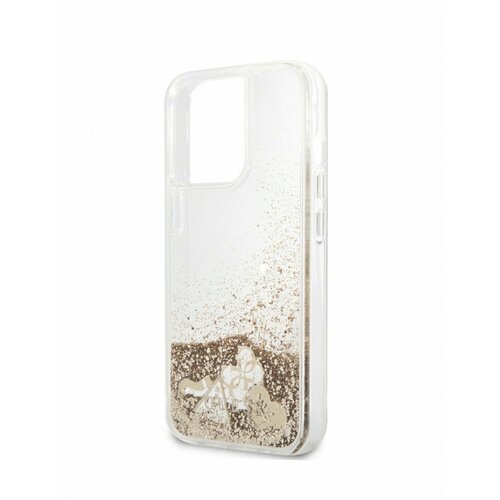 Чехол Guess Liquid Glitter Charms Hard для iPhone 13 Pro, цвет Золотой (GUHCP13LGLHFLGO)