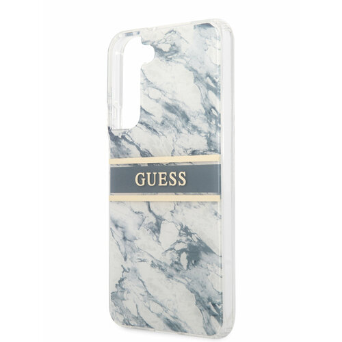 Guess для Galaxy S22+ чехол PC/TPU Marble with Gold stripe Hard Blue