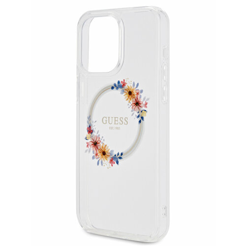 Guess для iPhone 15 Pro Max чехол PC/TPU Flowers Wreath Hard Transparent (MagSafe)