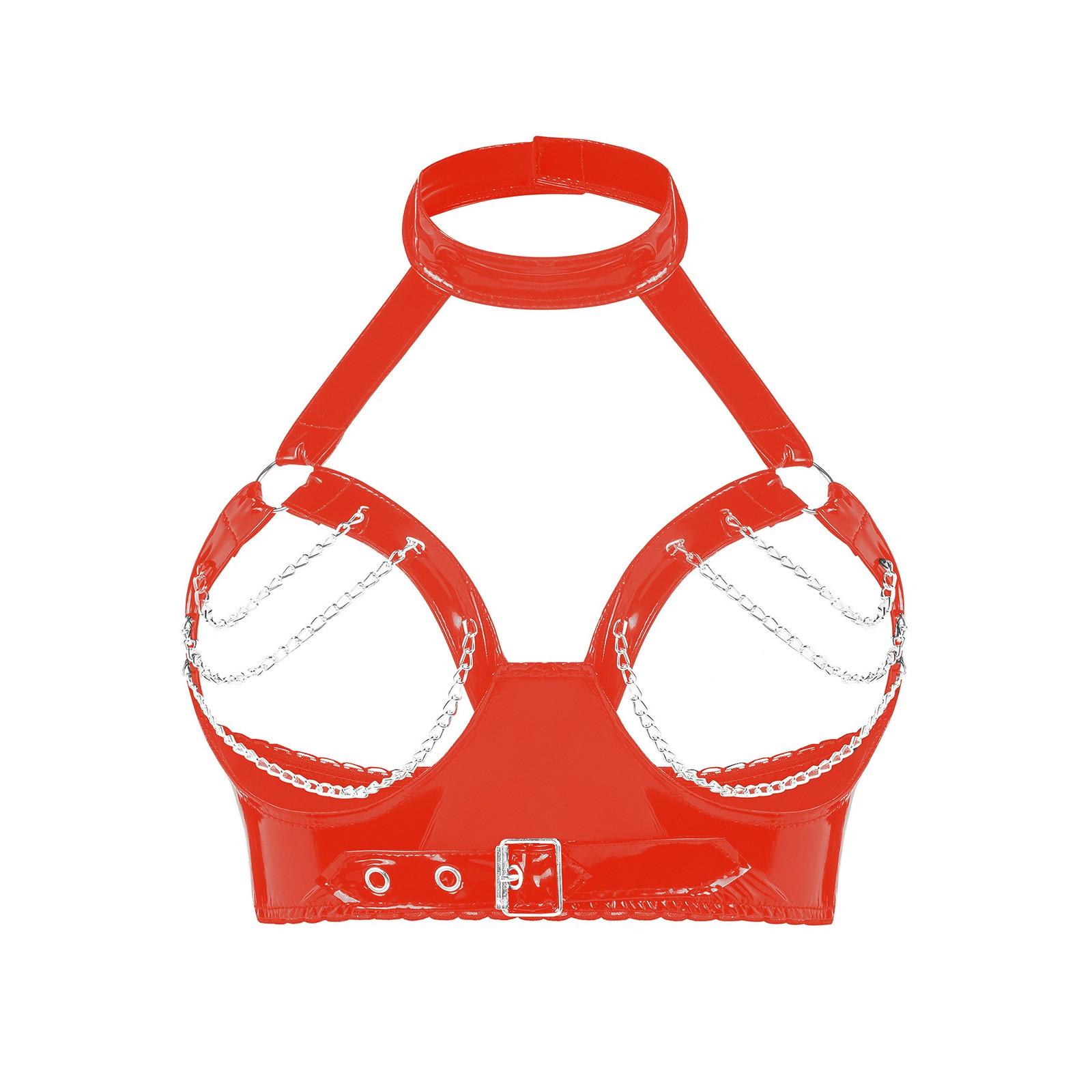 Высокая яркость ПВХ кожа сексуальный висячая шея и открытая грудь сексуальный бюстгальтер без запаха XL 67af1af6ca25
