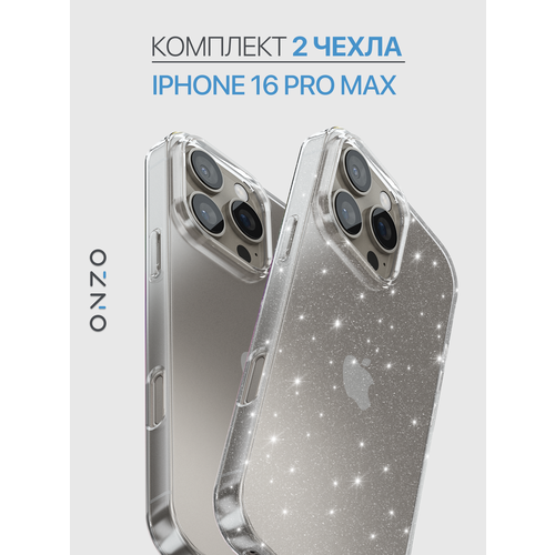 Комплект чехлов ONZO для Apple iPhone 16 Pro Max: прозрачный, серебряные блестки