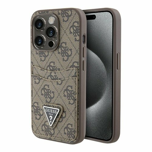 Guess для iPhone 15 Pro Max чехол кожаный с принтом 4G с двойным карманом для карт + Triangle metal logo