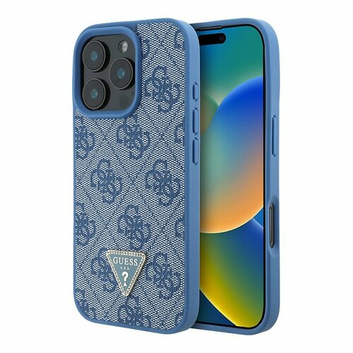 Guess чехол для iPhone 16 Pro Max, PU-кожа 4G Triangle Diamond logo голубой
