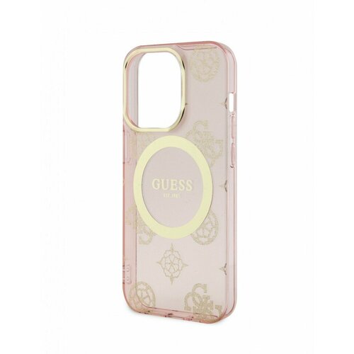 Guess для iPhone 14 Pro чехол PC/TPU Leopard Hard Pink/Gold (MagSafe)