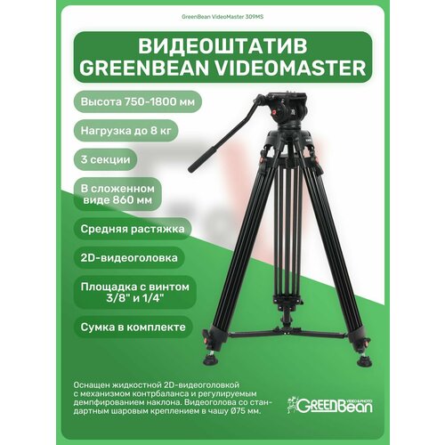 Видеоштатив GreenBean VideoMaster 309MS (180 см) профессиональный для камеры, фотоаппарата, для фото и видео съемки, трипод
