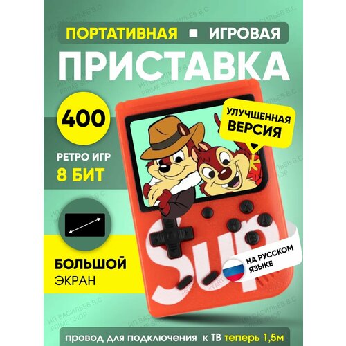 Игровая приставка SUP GAME BOX, 400 предустановленных игр, красная