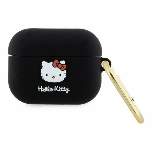 Чехол Hello Kitty для Airpods 1/2 с карабином и принтом 3D Rubber Kitty Head,черный 600014722668