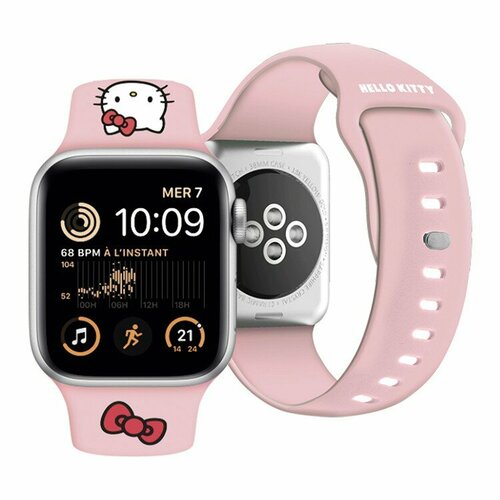 Легкий ремешок Hello Kitty для Apple Watch с размером корпуса 41/40/38 мм. Изготовлен из мягкого гипоаллергенного силикона. Надежное крепление, не вызывает неприятных ощущений при длительном использовании.
