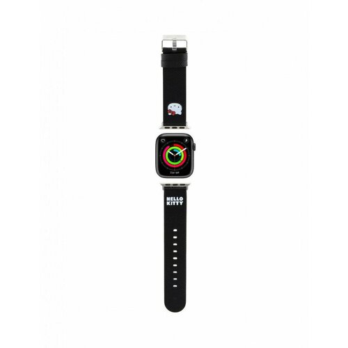 Ремешок Hello Kitty PU Grained leather 3D Rubber Kitty Head для Apple Watch 41/40/38 mm, цвет Черный (HKAWMPGKHK)