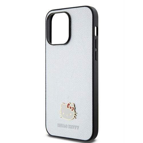 Hello Kitty для iPhone 15 Pro Max чехол PU Grained leather Metal Kitty Head Hard Silver