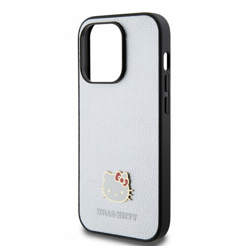 Hello Kitty для iPhone 14 Pro чехол PU Grained leather Metal Kitty Head Hard Silver