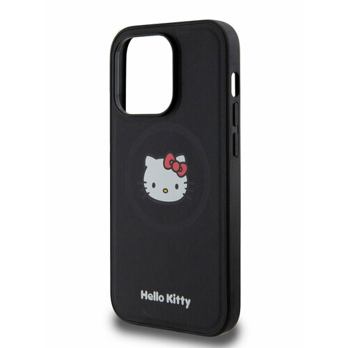 Hello Kitty для iPhone 15 Pro чехол PU Leather Kitty Head Hard Black (MagSafe)
