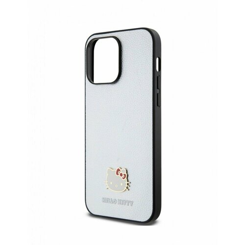 Чехол Hello Kitty PU Grained leather Metal Kitty Head Hard для iPhone 15 Pro Max, цвет Серебристый (HKHCP15XPGHDLMS)