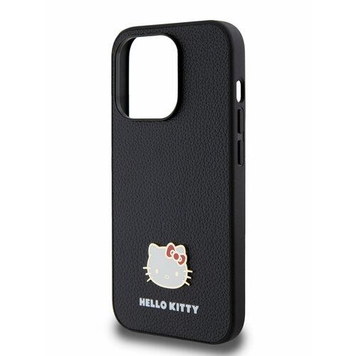 Hello Kitty для iPhone 14 Pro Max чехол PU Grained leather Metal Kitty Head Hard Black