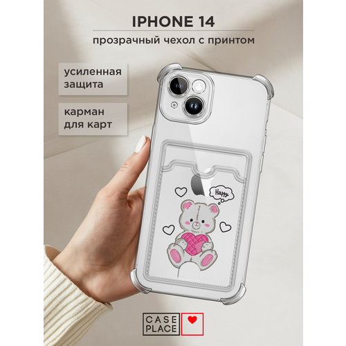 Чехол на Apple iPhone 14 (Айфон 14) с картой и принтом Милый мишка с сердечком
