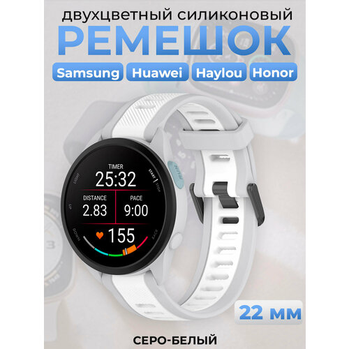 Двухцветный силиконовый ремешок для Samsung, Huawei, Honor, Haylou, 22 мм, серо-белый