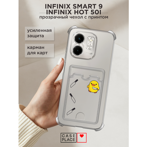 Чехол на Infinix Smart 9/Hot 50i (Инфиникс Смарт 9/Хот 50i) с картой и принтом Милый утенок