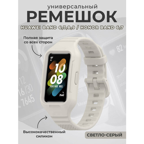 Универсальный силиконовый ремешок для Huawei Band 6,7,8,9 / Honor Band 6,7, светло-серый