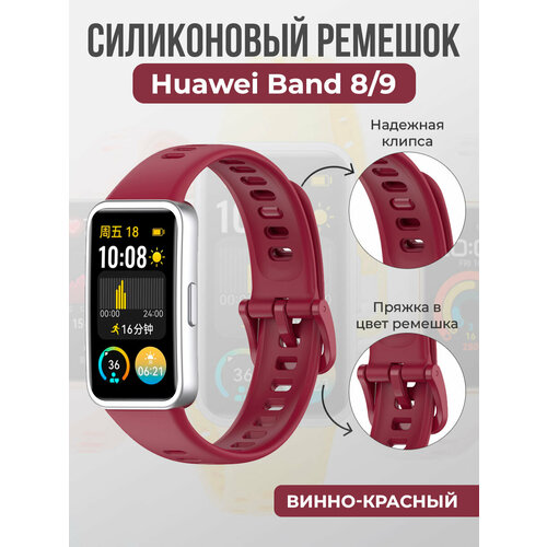 Силиконовый ремешок для Huawei Band 8/9, с клипсой, винно-красный