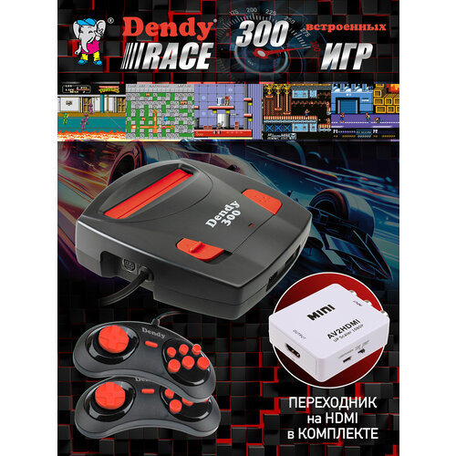 Игровая приставка Dendy Race 300 встроенных игр (8-бит) с HDMI конвертером/ Ретро консоль Денди с двумя джойстиками