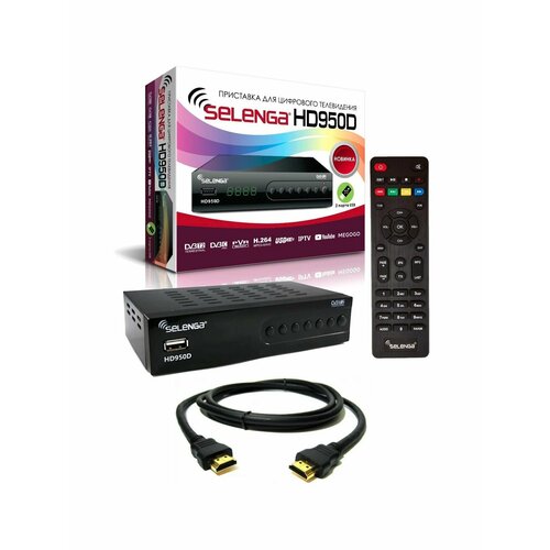 Комплект Цифровой DVB-T2 ресивер Selenga HD950D + Кабель HDMI 1.5 м медный