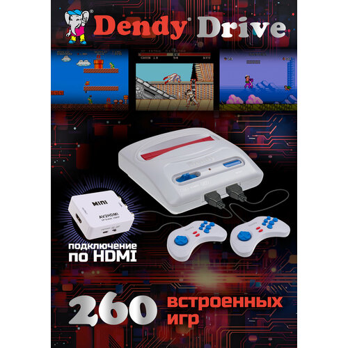 Игровая приставка Dendy Drive 260 встроенных игр с HDMI конвертером (8-бит) / Ретро консоль Денди с двумя джойстиками