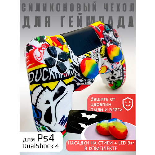 Чехол на геймпад PS4: PunkRock + 2 насадки + Led Bar