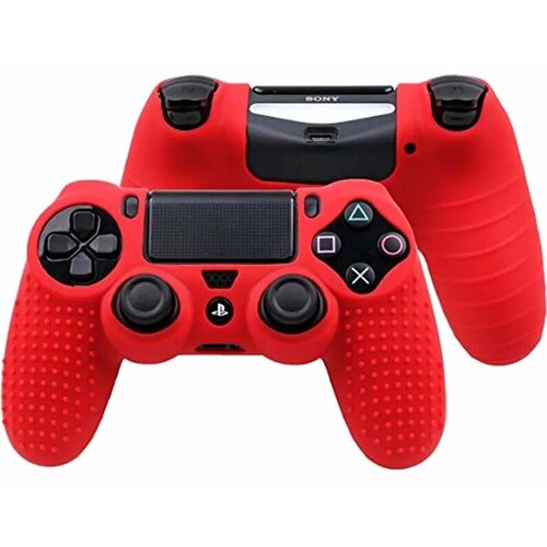 Чехол на геймпад PS4: рифленый + насадки Красный