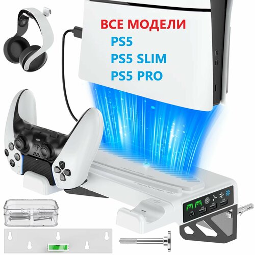 Кронштейн настенный и вертикальная подставка с охлаждением и зарядкой геймпадов dualsense для Sony PS5 Fat , SLIM , PRO