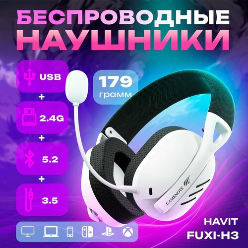 Наушники беспроводные игровые с микрофоном Havit Fuxi-H3, black white