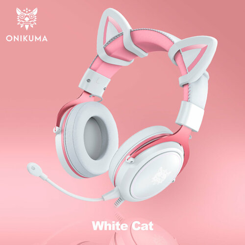 Игровые наушники Onikuma X10 White Cat белые с кошачьими ушками и подсветкой