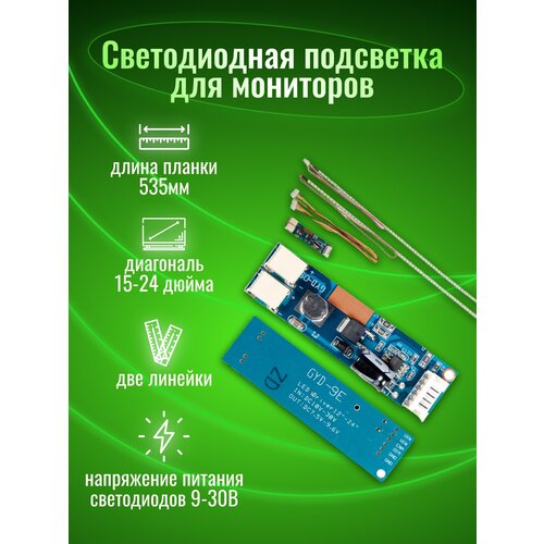 Светодиодная подсветка для телевизора LED LCD 24" (2 линейки 535x3мм(2835*99) + драйвер) (комплект)