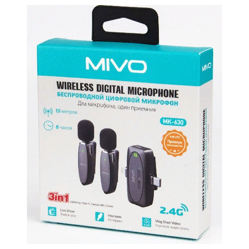 Микрофон петличный беспроводной для телефона Type-C и Lightning Mivo MK-630