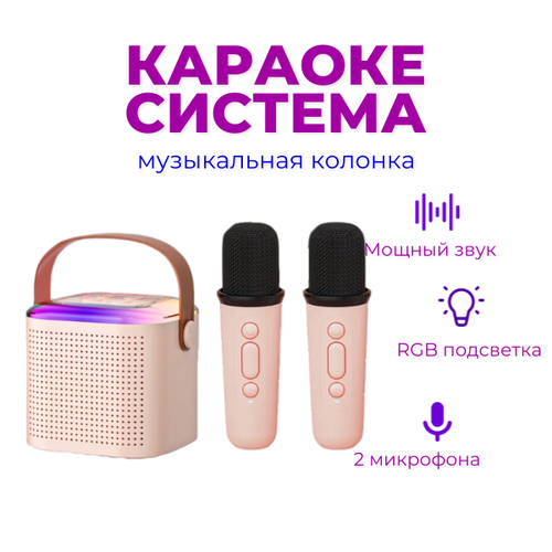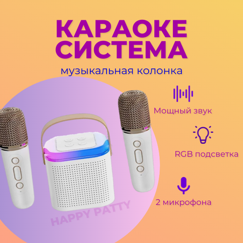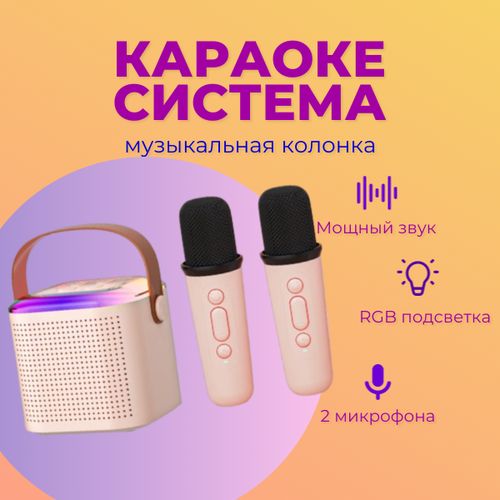 Караоке-колонка с двумя микрофонами и светомузыкой HAPPY PATTY розовая/ детское караоке