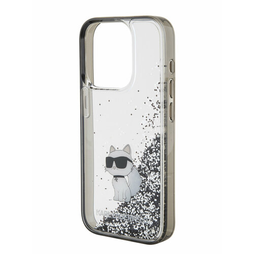 Lagerfeld для iPhone 16 Pro Max чехол Liquid Glitter NFT Choupette Hard Transparent/Black