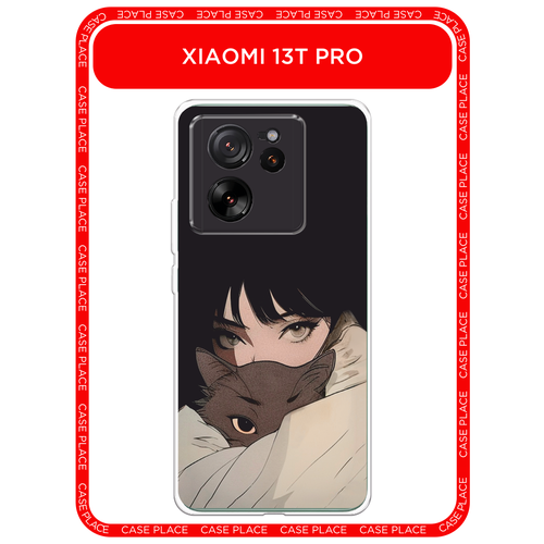 Чехол на Xiaomi 13T Pro / Сяоми 13Т Про с принтом Аниме девушка с котиком