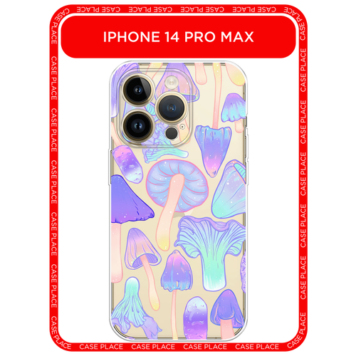 Чехол на Apple iPhone 14 Pro Max / Айфон 14 Про Макс с принтом Пастельные грибы, прозрачный