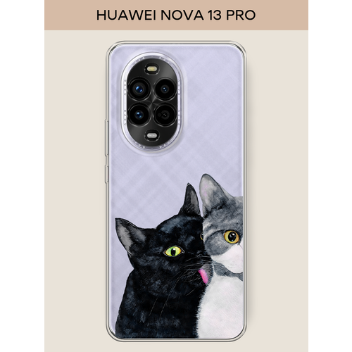 Чехол на Huawei Nova 13 Pro / Хуавей Нова 13 Про с принтом Кошачья любовь, прозрачный