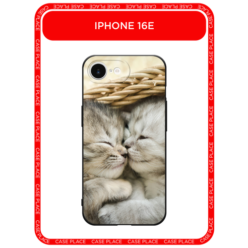 Черный матовый чехол на Apple iPhone 16e / Айфон 16е с принтом Милые котята
