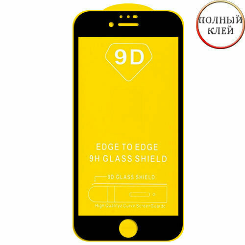 Защитное стекло 9D для Apple iPhone 7 / 8 клеится на весь экран с черной рамкой