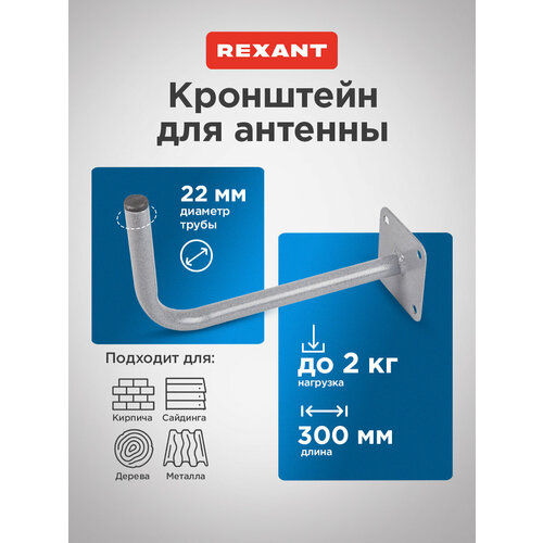 Эфирный Г-образный кронштейн крепление для телевизионной антенны, вылет 30 см REXANT