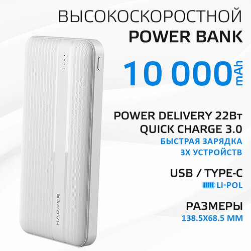Внешний аккумулятор HARPER PB-10006 (10 000 мАч, Quick Charge 3.0 и Power Delivery)