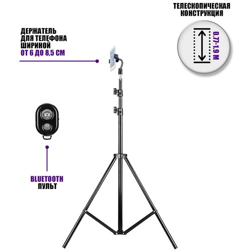Напольный штатив JBH-T3B с универсальным держателем для телефона и пультом Bluetooth, высота 1.9 м