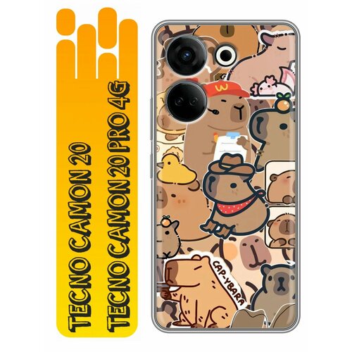 Чехол для Tecno Camon 20, Tecno Camon 20 Pro с принтом Смешные капибары на Техно Камон 20, Техно Камон 20 Про