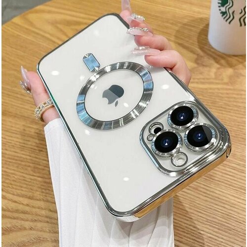 Чехол О'Кейси, для Samsung A55, MagSafe, со стразами, серебристый/прозрачный