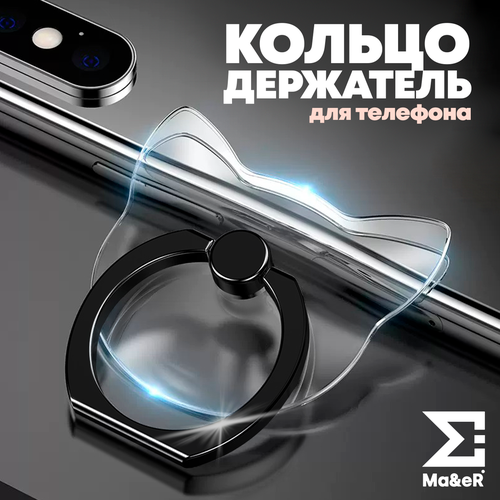 Попсокет для телефона кольцо держатель прозрачный котик черный