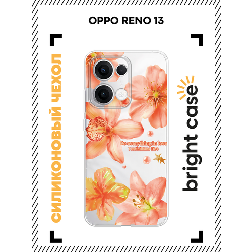 Чехол на Oppo Reno 13 / Оппо Рено 13 с принтом Оранжевые цветы, прозрачный