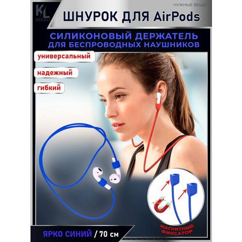 KoLeli / Силиконовый шнурок с магнитом, для беспроводных наушников Airpods, держатель для наушников, кобальт