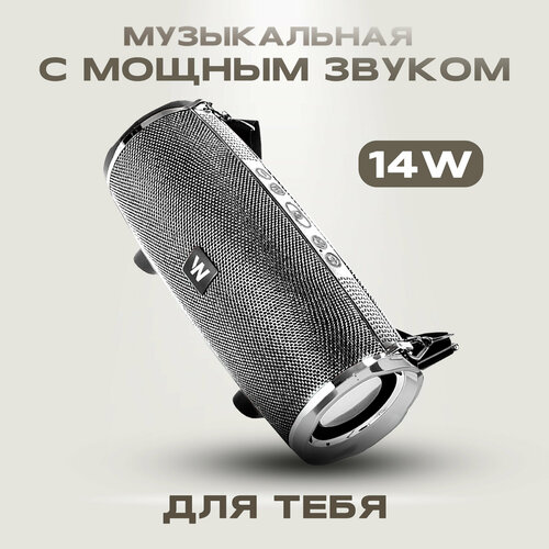 Портативная колонка bluetooth 5.0, WALKER, WSP-110, 2 динамика по 5Вт, блютуз колонка беспроводная, колонка музыкальная как jbl акустика, серая